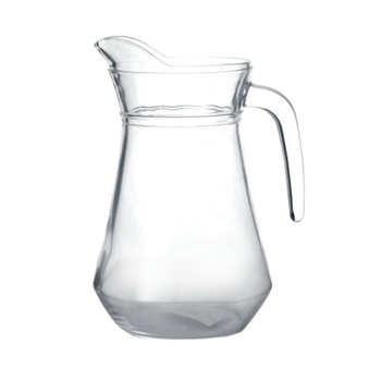 أواني زجاجية منزلية رخيصة الثمن من الشركة المصنعة إبريق زجاجي على شكل ثماني مخصص سعة 1.1 لتر إبريق عصير بيرة مع غطاء بلاستيكي وفوهة للبيع بالجملة بكميات كبيرة