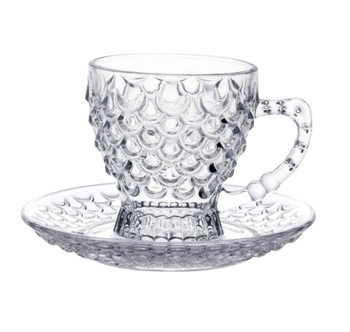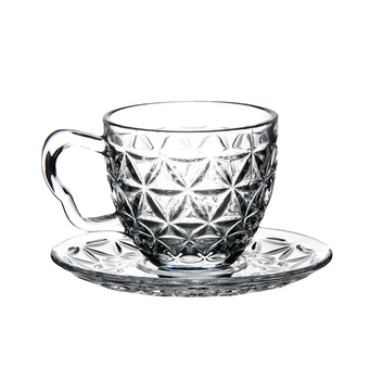 بيع بالجملة كوب قهوة زجاجي بتصميم تفاح كلاسيكي وقدح بالرمل 12 قطعة من النظارات المنقوشة ومجموعات Sacucer