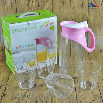 إبريق ملون عالي الجودة مقاوم للحرارة مع أكواب شرب من الزجاج طقم إبريق بيرة