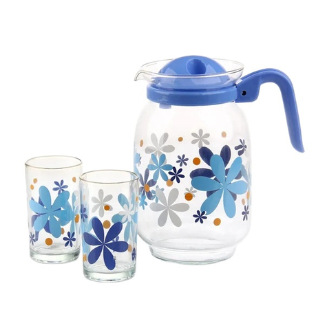 7 ชิ้นแก้วชุดดื่มเหยือกน้ํา PP พิมพ์ 308 กาต้มน้ําชา 1.6L พร้อมแก้วน้ําเหยือกน้ําผลไม้พร้อมการพิมพ์