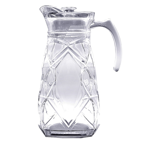 เหยือกแก้วลายทางใส1.8L มีฝาปิดความจุมาก1800มล. เหยือกน้ำเย็นเหยือกชาเหยือกเบียร์ร่างพร้อมหูหิ้วด้านข้าง