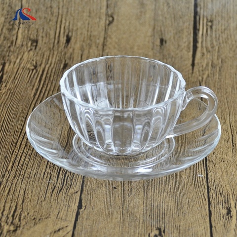 卸売200mlガラスコーヒーマグ & ソーサーセットシンプルな7オンス12PCSティーカップセットガラス皿Taza De Vidrio De Te Cafe