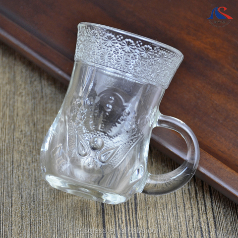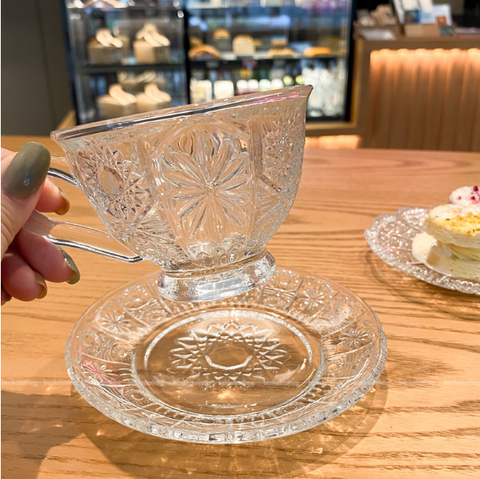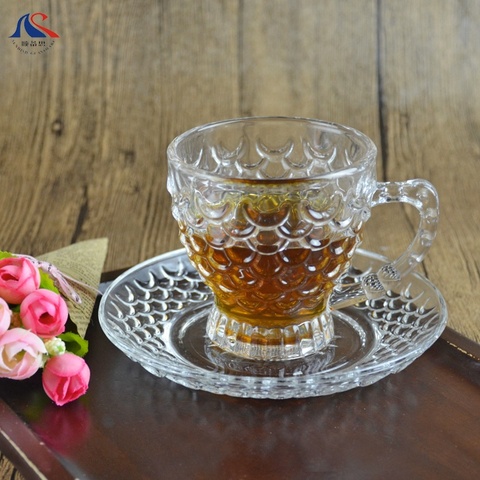 工場高級エンボスガラスティーカップセットハンドルとソーサーティーカップ付きコーヒーマグ飲用タンブラーガラスカップセット