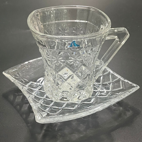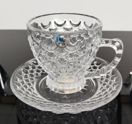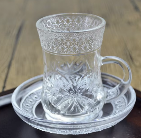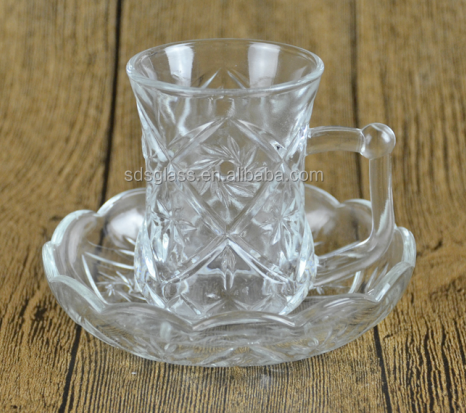 トルコガラスティーカップ & ソーサーセットエンボスパターン小さなカプチーノマグカッププレート付き