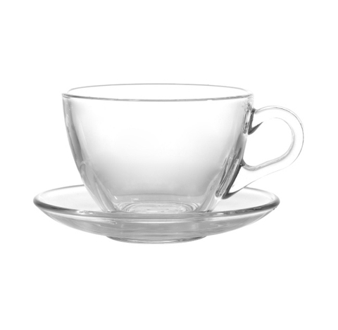 シンプルで素朴なガラスティーカップとソーサーセットフォートカフェバー人気の6オンスカプチーノカップセットガラス製品